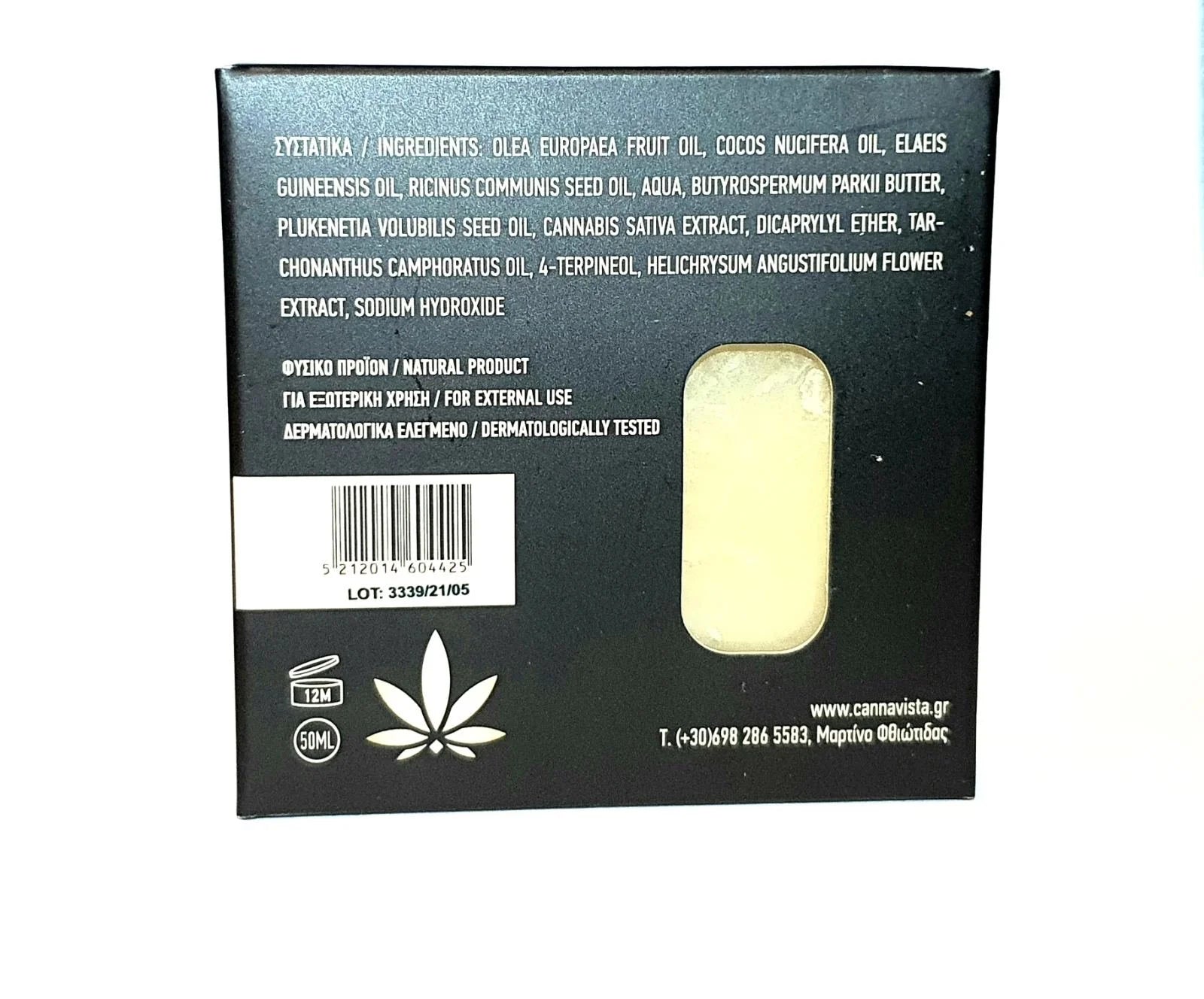 Handmade cold pressed herbal soap with Cretan virgin olive oil and Hemp oil. Enriched with coconut oil, castor oil, shea butter and probiotics. Ideal for very sensitive skin. It helps with dry skin, scars as it deeply cleanses. It allows its ingredients to work and leaves the skin soft and hydrated. Suitable for all skin types and all ages. Dermatologically tested!